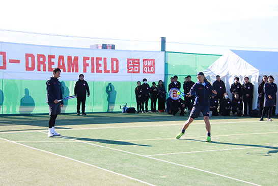 【写真】イチロー、錦織圭が見守る中まずはコート前方から練習
